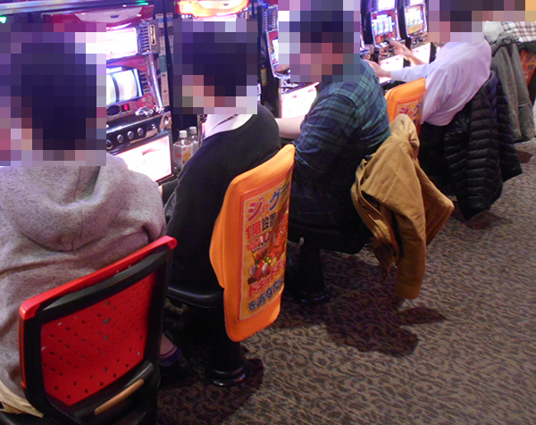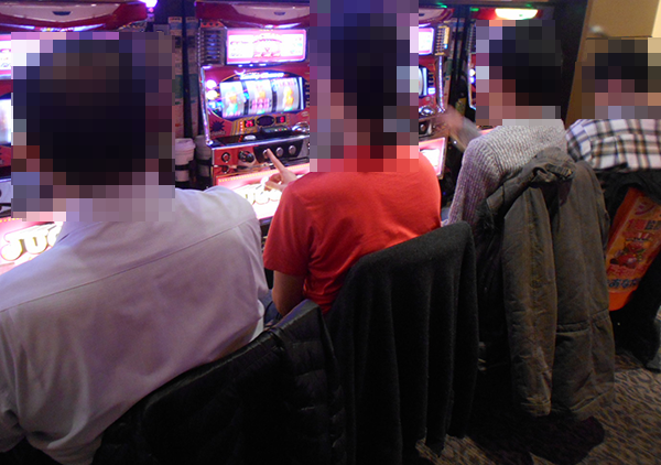 ジャグラーシリーズのみで構成された1階をみてまわると、入り口から一番遠い場所に位置する「ゴーゴージャグラー」でひときわ大きな盛り上がりが感じられた。