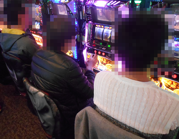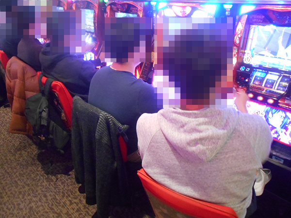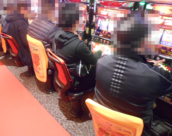 また、フレンドチェアを使って友人の隣で遊技を楽しんでいる姿も印象的。パチスロのおもしろさを共有できるサービスがあることも、魅力のひとつだろう。