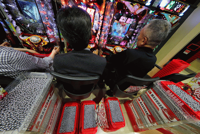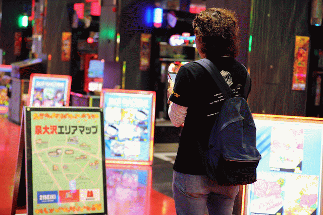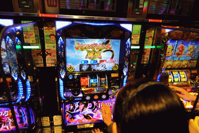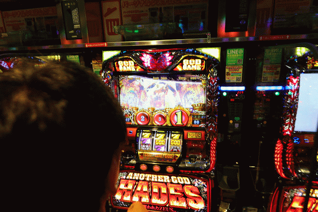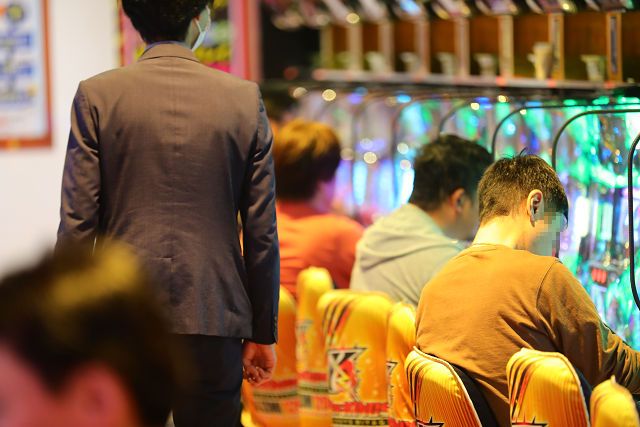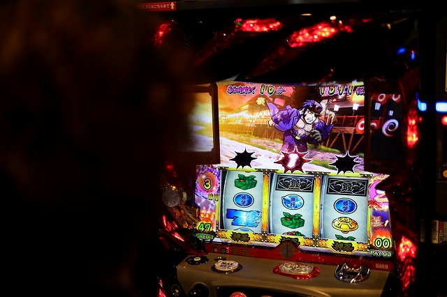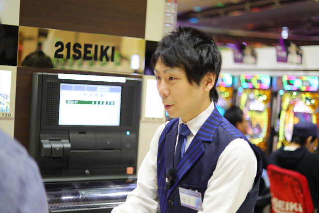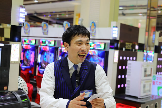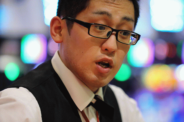 台のデータ、あるいはギャルを・・・見ているのかはわからないが、店内をくまなく調査している様子。