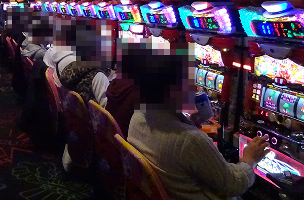 理想的な展開で遊技を楽しんでいるようなシーンも多数。確認時にはつねに満席となっており、立ち見をおこなうプレイヤーもあらわれるほどに人気を集めていた。