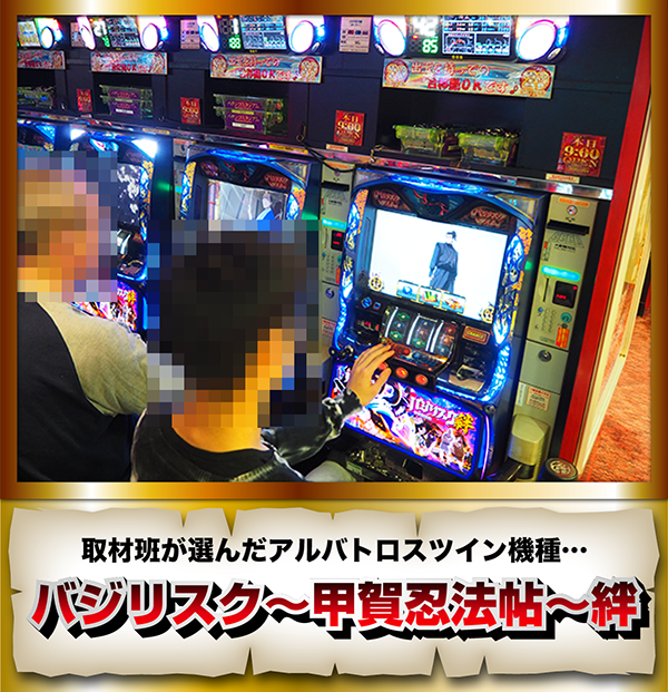 数々の機種がにぎわうホール内で、とくに目を引かれたのは「バジリスク~甲賀忍法帖~絆」!!
