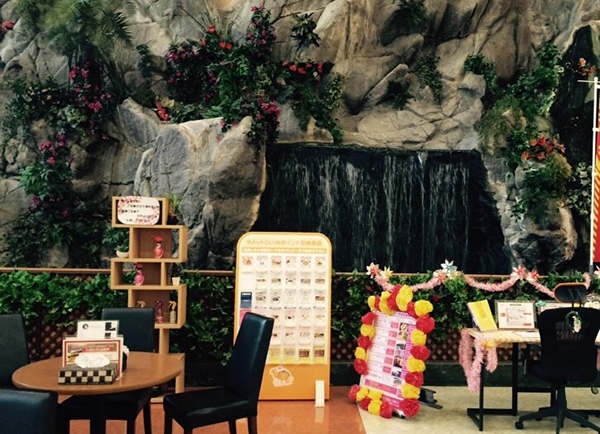 景品カウンター横には大きな滝があるレストコーナーも存在。開放的な気分でリフレッシュできることだろう。