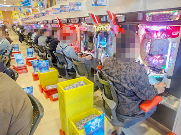 1円パチンコは全体的に高稼働で、空き台を探すのがやっとなほど。各人、好きな機種を見つけ出し、心から楽しんでいたように思う。