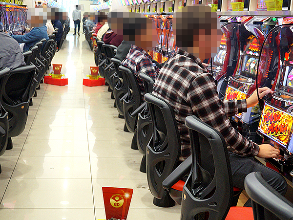 同店はパチンコ320台・パチスロ160台、合わせて480台を設置する大型ホールで、取材時も大勢のプレイヤーが集まっていた。