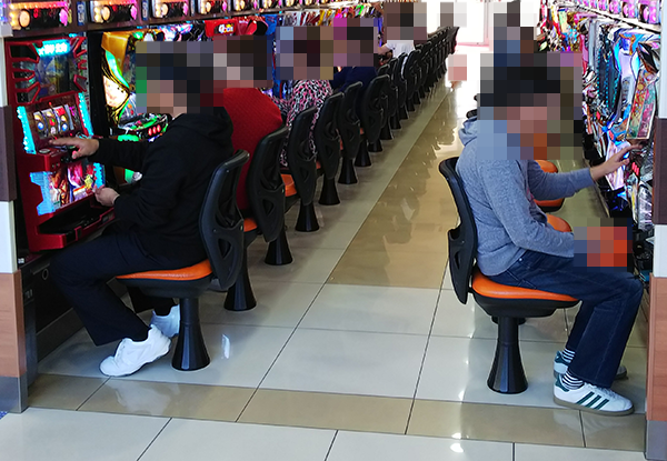 ホール内に入ってみると、パチンコとパチスロの両方に遊技をおこなうプレイヤーの姿があった。