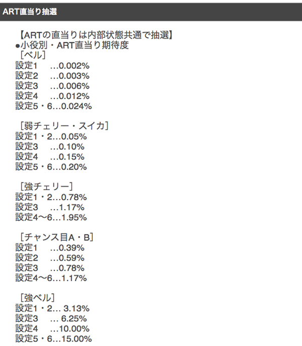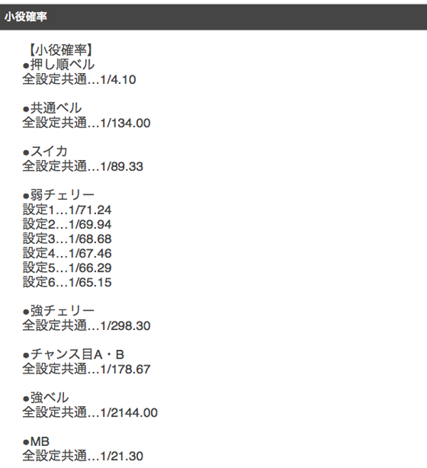 通常時の小役確率において、設定差が存在するのは弱チェリーのみ。