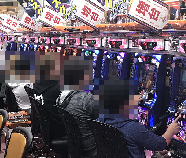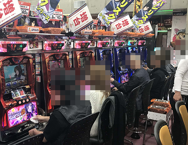 ホール全体が大盛況となっていた「APULO塩尻店」。「バジリスク~甲賀忍法帖~絆」に広がっていた光景がうらやましく思えるほどに明るく華やか。