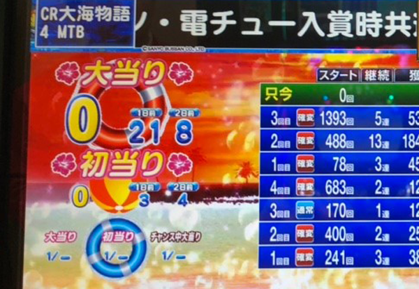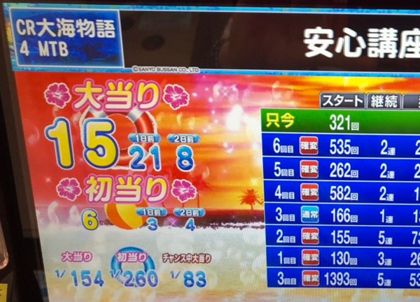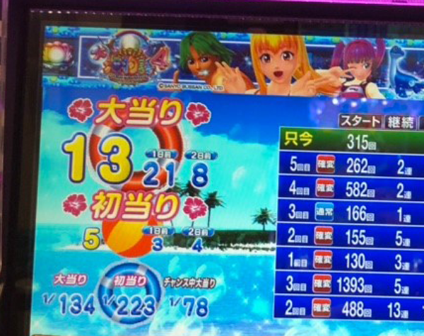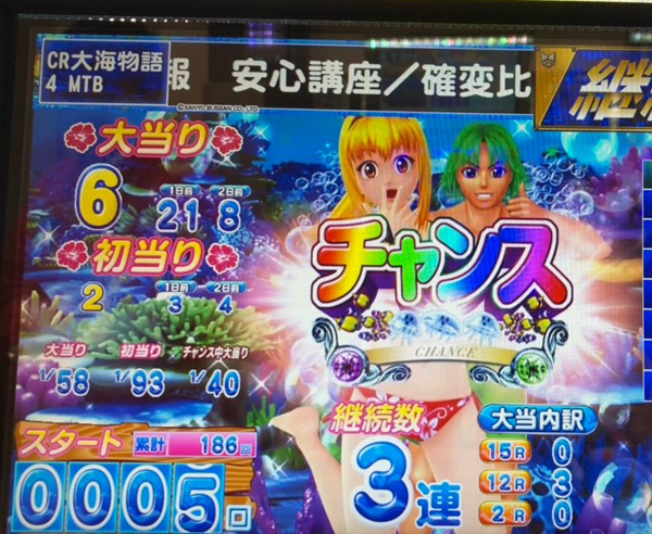 1回目の初当りが3連チャン、2回目は5連チャンと、幸先のよいスタートをきった。