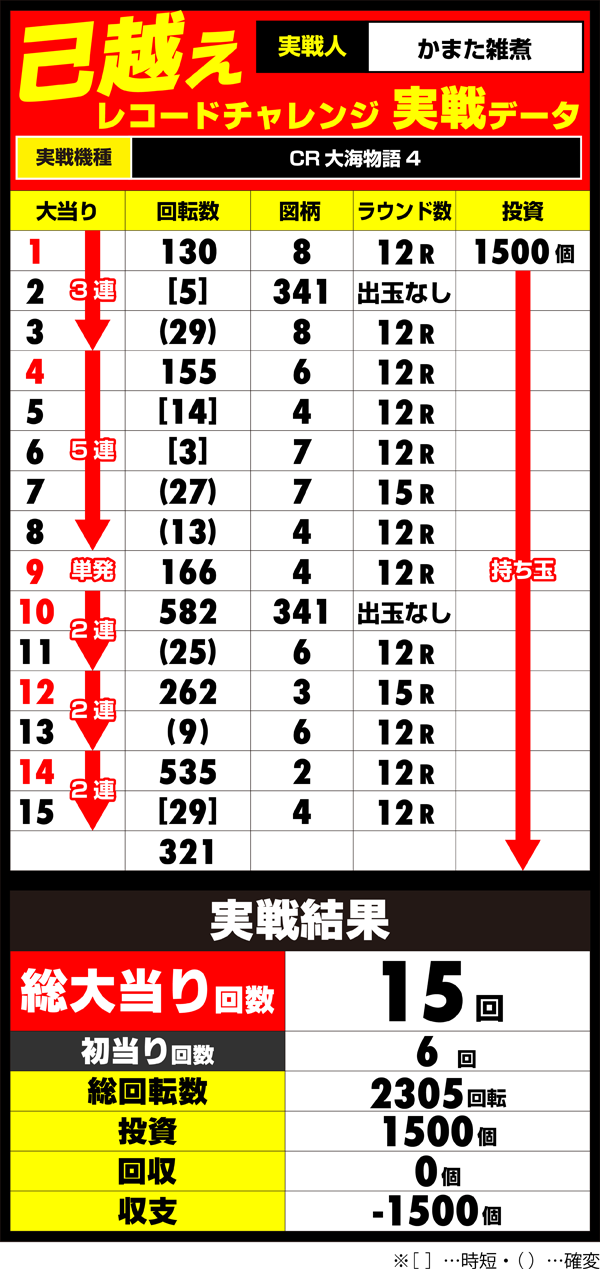 流れを大きく変えることはできず、たった15回の大当りでチャレンジ終了!