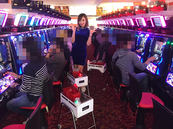 パチスロでは、玲香ちゃんが実戦した「バジリスク~甲賀忍法帖~絆」のほかにも、さまざまな機種に華やかな光景が広がっていました!