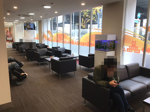 ちょっと疲れたときは、広々とした休憩スペースへレッツゴー! 分煙されているので、自分に合った場所で快適にくつろげることでしょう。
