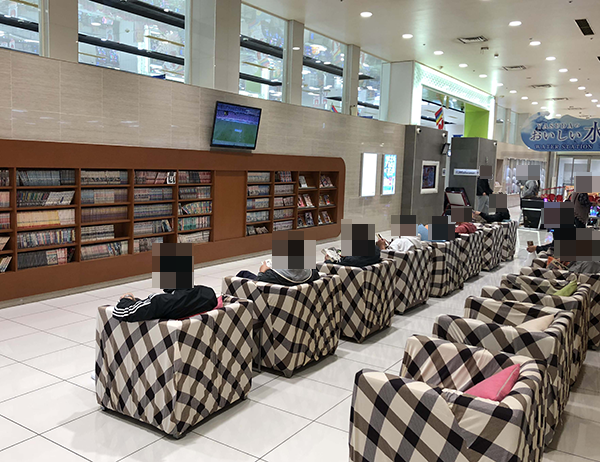 チェック柄のソファがたくさん置かれているレストスペースも注目したポイントだ。多くのプレイヤーがマンガを読みながら休憩をとっているなど、優秀な設備面も支持されている要素なのだろう。