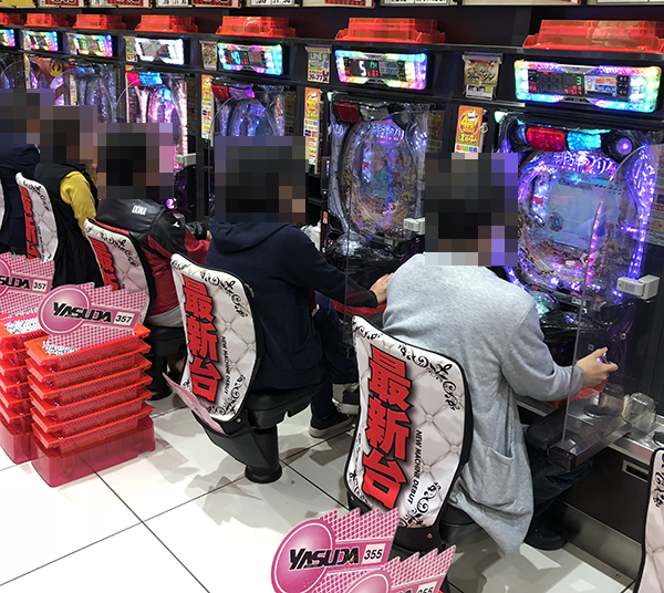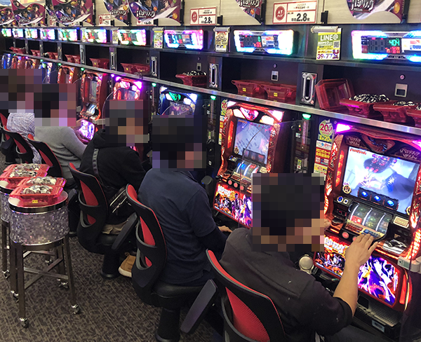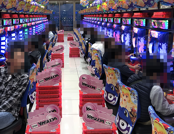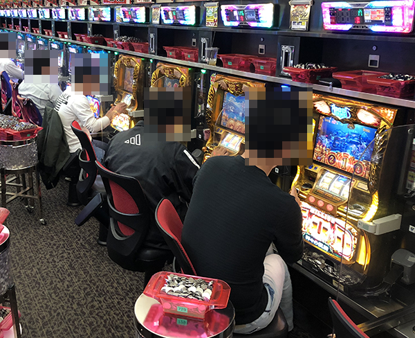 うれしそうなプレイヤーは、パチスロの低貸し玉コーナーにも多かった。