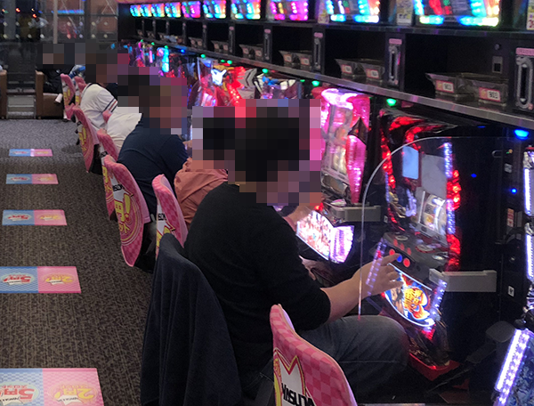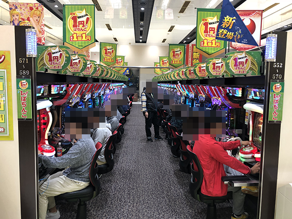 午後の4円パチンコでは、機種の魅力を堪能するようなプレイヤーが多数。