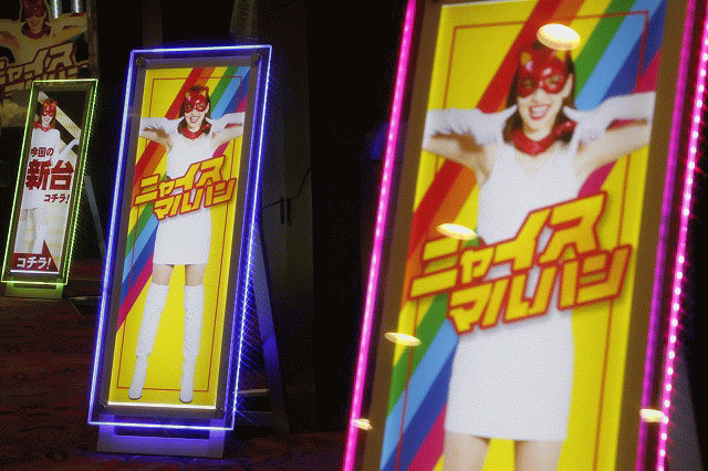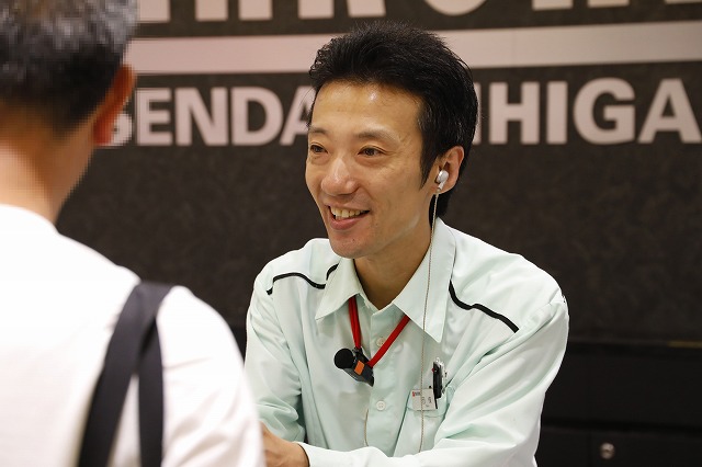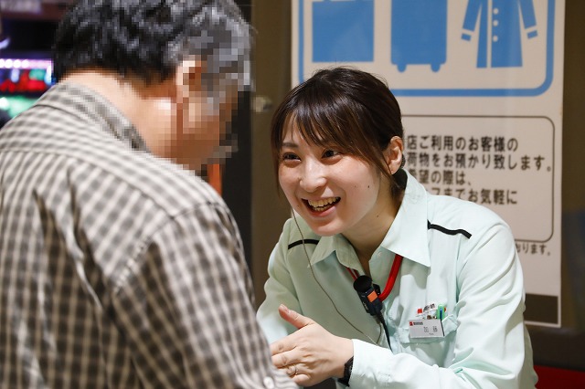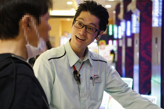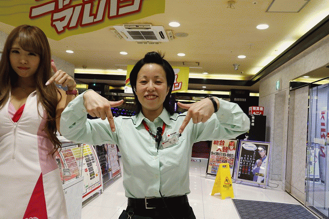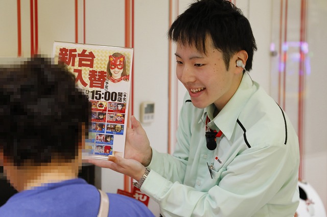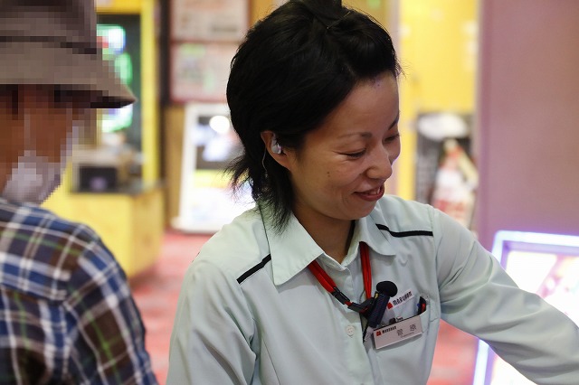 笑顔でファンと接する、マルハンスタッフの楽しそうな表情をご覧いただきたい。