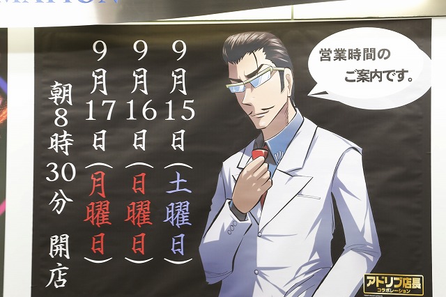 開店時間を案内してくれているアドリブ店長の表情は、「朝が弱い者はMMGPに参加することすらできない」と挑発的(に見える気がする)。