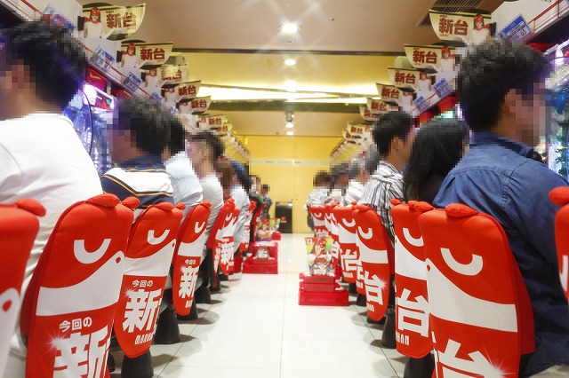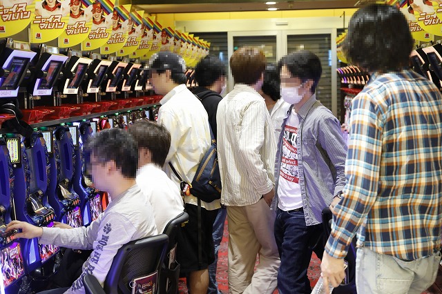 各自お目当ての台をゲットし、出玉を積み上げるイメージトレーニング中といったところか。
