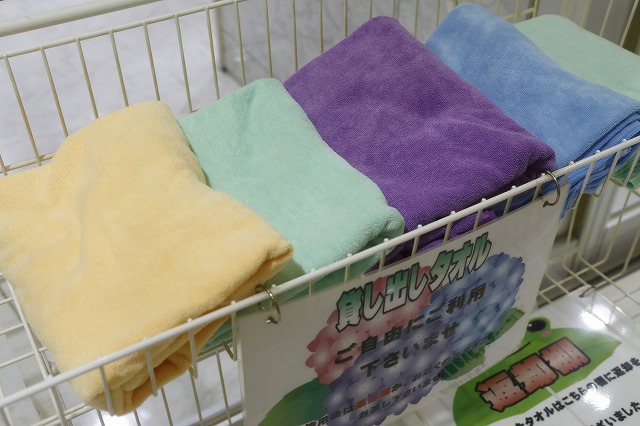 雨の日には、濡れた体を拭くタオル・傘の貸し出しも。