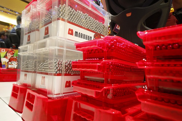 怒涛の勢いで積まれていくドル箱、これぞ名物「マルハンタワー」!!