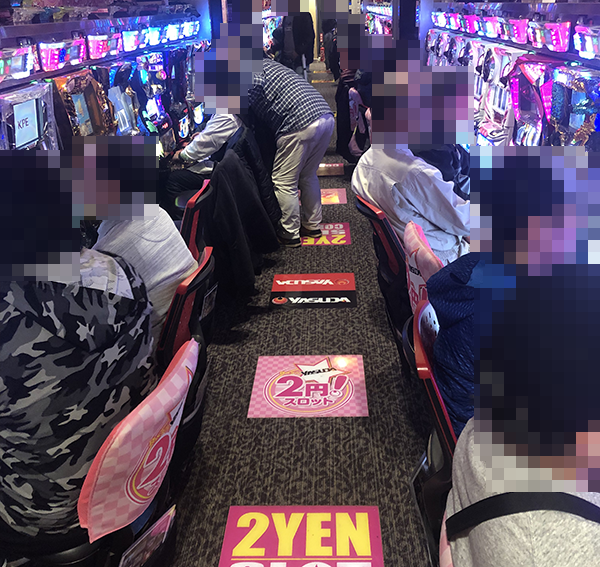 2円パチスロをみると、空き台がみつからないほどの高稼働となっていた。
