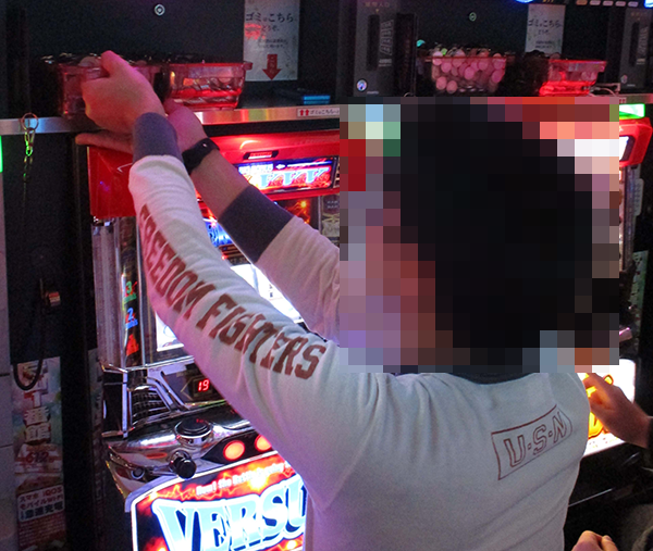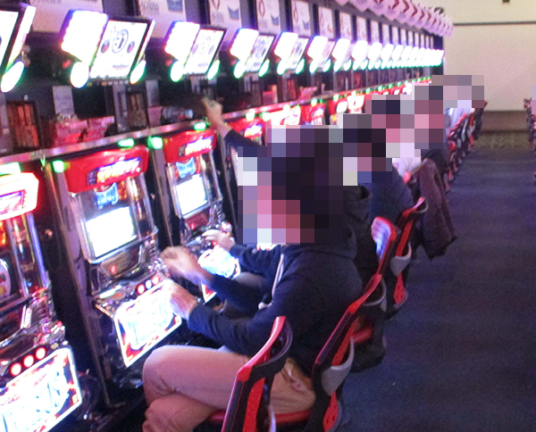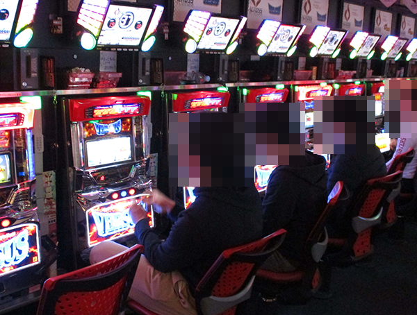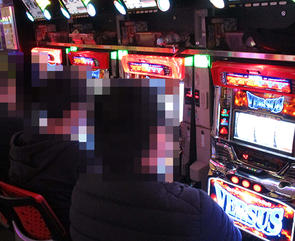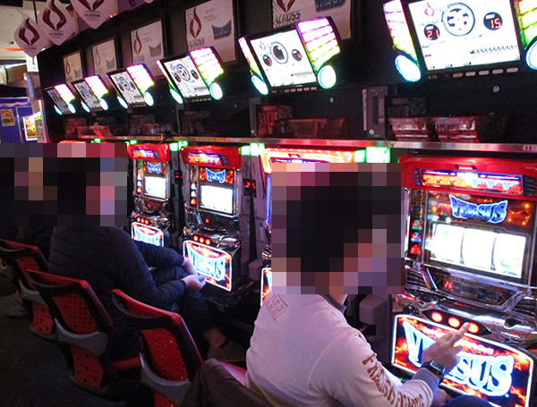 ボーナスタイプの機種が集められているシマに6台並びで設置され、確認時に遊技をおこなっていたプレイヤーは4人。