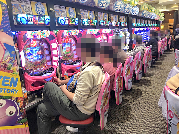 1円パチンコを見てみると、「CRスーパー海物語IN沖縄4」をはじめとする海物語シリーズが人気を集めており、ほぼ満席となるほどのにぎわいを見せていた。
