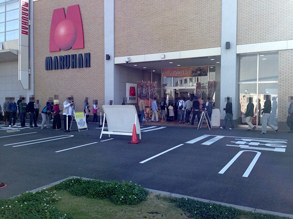 朝イチの入場はパチンコとパチスロで別々となっており、集まっていたプレイヤーは両方を合わせて60名ほど。開店時間まで車のなかで待つプレイヤーの姿も多くみられた。