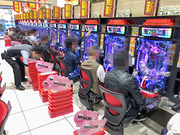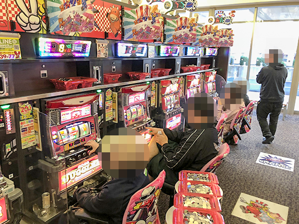 20円パチスロに目を向けると、「ゴーゴージャグラー」や「押忍!サラリーマン番長」、「沖ドキ!」で華麗なパフォーマンスを披露するプレイヤーが複数見られ、シマ内から活気が感じられた。