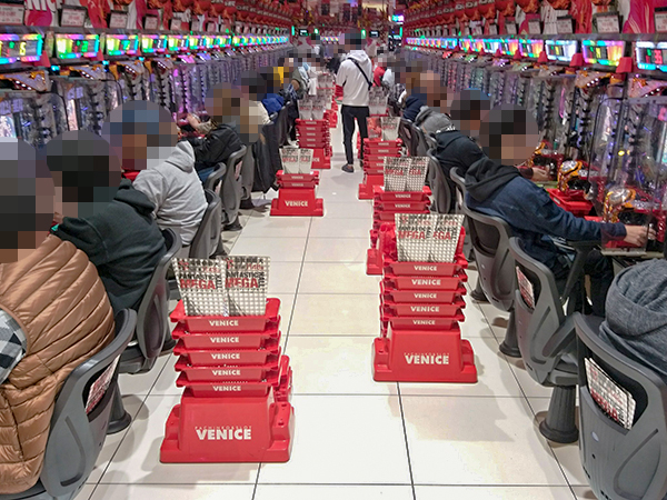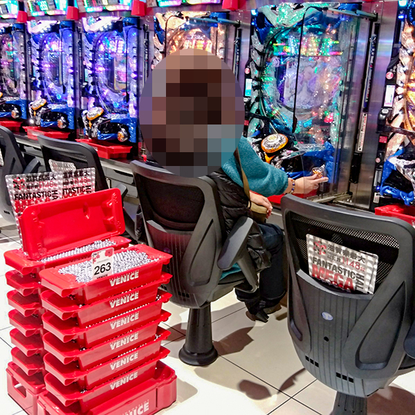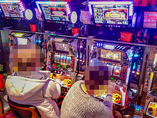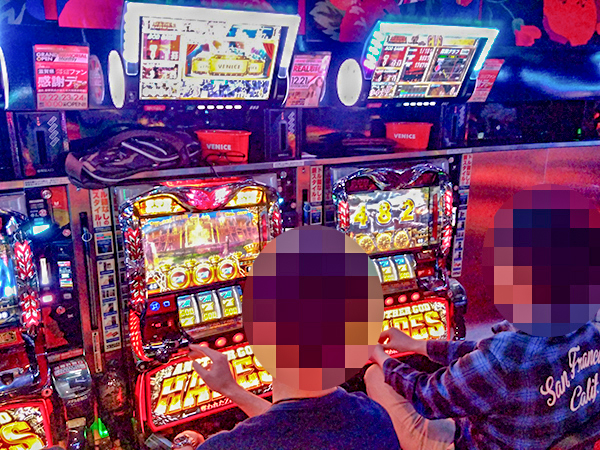 20円パチスロに目を向けると、「バジリスク~甲賀忍法帖~絆」や「パチスロ北斗の拳 転生の章」で華麗なパフォーマンスを披露するプレイヤーが複数見られ、シマ内からは活気が感じられた。