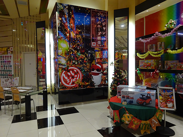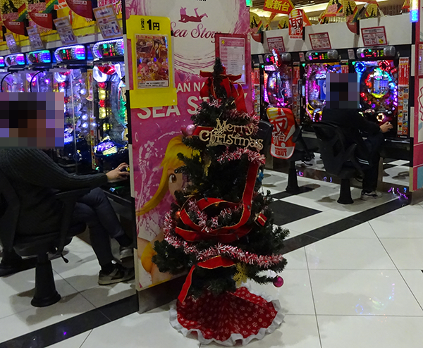 清潔感のある店内は、すっかりクリスマスムード。賞品コーナーやシマの入り口に、クリスマスツリーや華やかなモールなどが飾られていた。