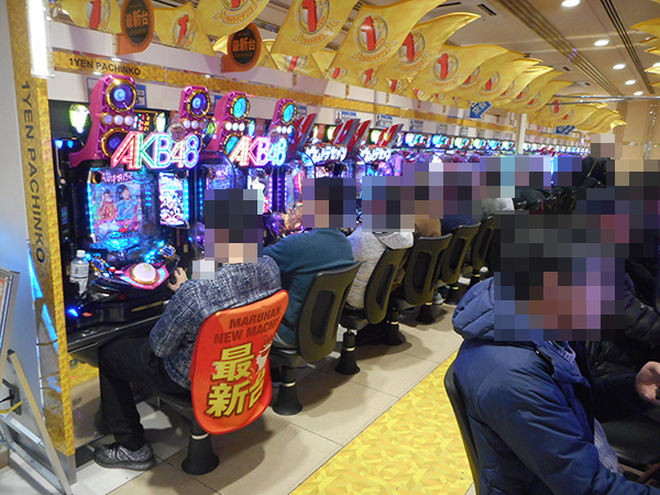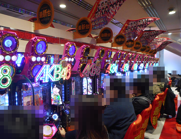 朝イチのパチンココーナーをみると、4円パチンコの「CRぱちんこ AKB48-3 誇りの丘」や「CR牙狼TUSK OF GOD」などが人気。