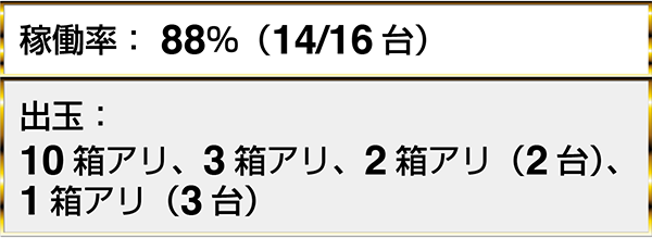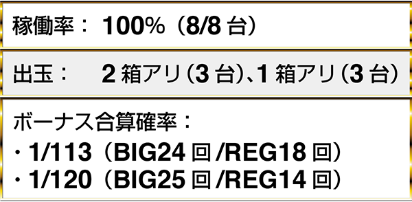 ・『ゴーゴージャグラー』は8台中6台に1箱以上の出玉アリ