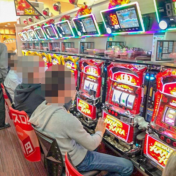 20円パチスロに目を移すと、「バジリスク~甲賀忍法帖~絆」や「アナザーゴッドハーデス-奪われたZEUSver.-」で理想的な展開を迎えたプレイヤーが続出しており、シマ全体に華やかな光景が広がっていた。
