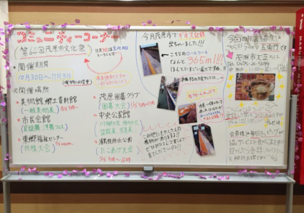 店内のホワイトボードには、催し物の情報なども掲載されており、地域に密着しているホールといった印象も受ける。