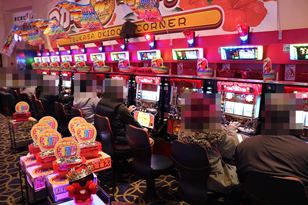 パチンコとパチスロの両方からにぎわいが感じられ、たくさんの笑顔に出会えるように思えた。