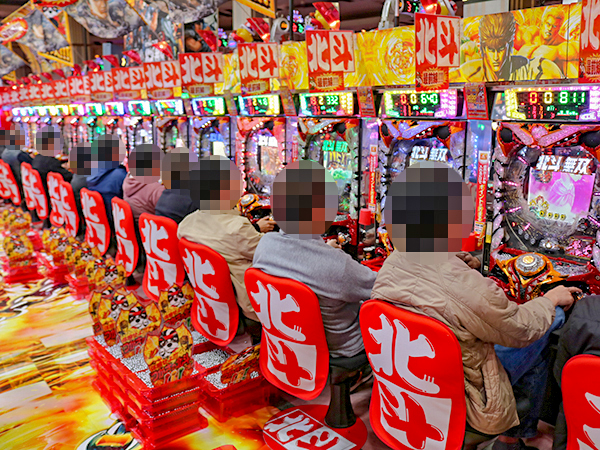 14時半ごろの4円パチンコでは「CRフィーバー バイオハザード リベレーションズ」や「ぱちんこCR真・北斗無双」が活況の様子で、プレイヤーたちの満足気な表情が印象に残っている。
