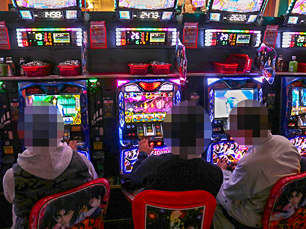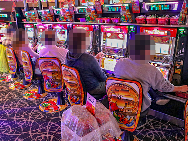 20円パチスロを見渡すと、「沖ドキ!-30」や「アナザーゴッドハーデス-奪われたZEUSver.-」で理想的な展開を迎えたプレイヤーが多く、シマ全体に華やかな光景が広がっていた。