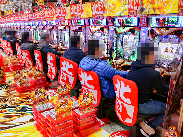 16時ごろの4円パチンコでは、「ぱちんこCR真・北斗無双」や「CRぱちんこ AKB48-3 誇りの丘」などで好調なプレイヤーが見受けられ、時折見せるイキイキとした表情が印象に残っている。