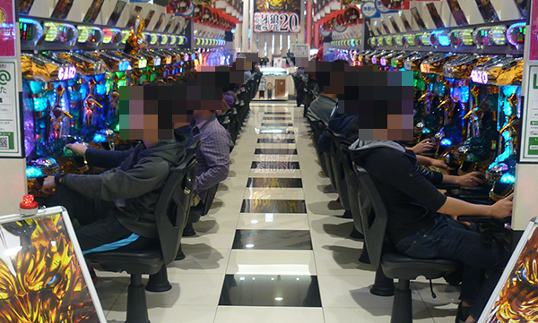4円パチンコでは、「CR牙狼 魔戒ノ花」が圧倒的な人気を誇っており、ほぼ満席といった状況。