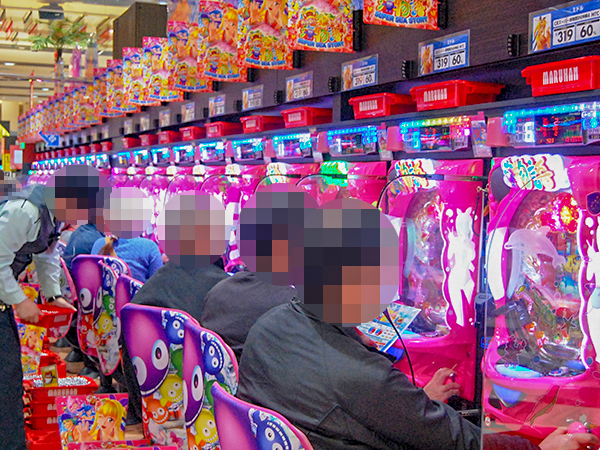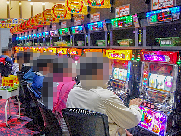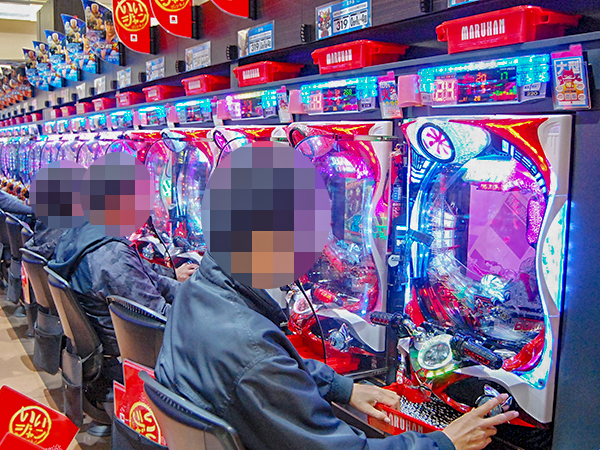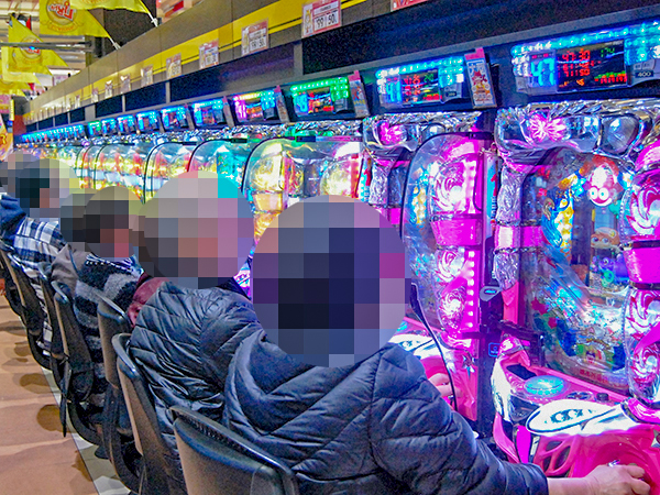 取材時の店内には既に多くのプレイヤーが集結し、パチンコ・パチスロを問わずにぎやかな状況となっていた。