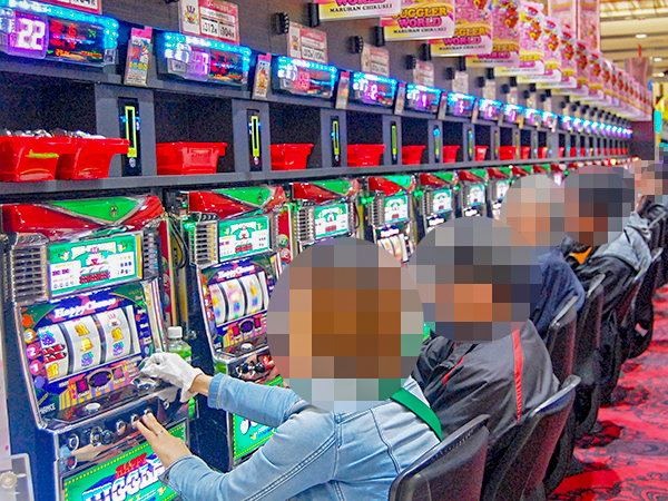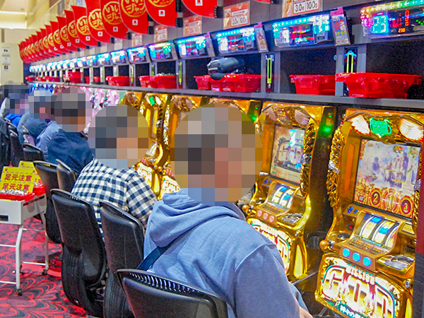 5.556円/1枚パチスロは微笑ましいムード。遊技中に見せるプレイヤーたちの嬉しそうな表情が印象に残っている。