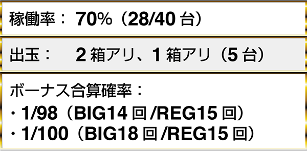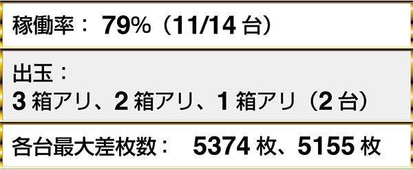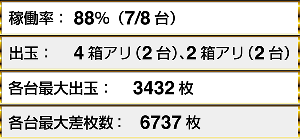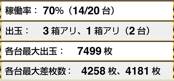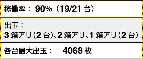 ・『アナザーゴッドハーデス-奪われたZEUSver.-』は7台中4台に2箱を超える出玉アリ