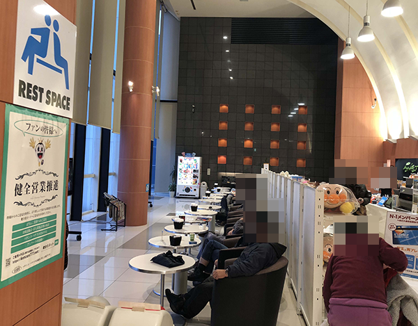 広々としたレストスペースが完備されており、利用している姿も多数。ひとり用の机とイスがたくさん用意されているため、自分のスペースを確保したうえで、ゆったりと休憩できていたことだろう。