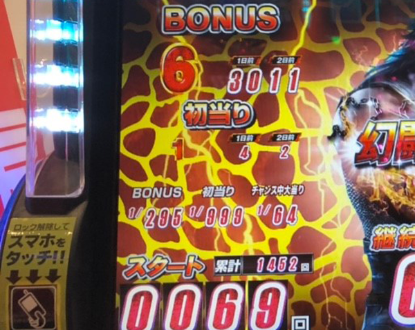 22時を過ぎた頃に初当りを獲得し、連チャンを6回まで伸ばすも閉店時間となり、STを残してチャレンジは終了となった。