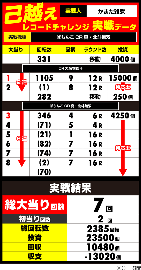己越えよりも勝利を掴むことを優先したかまた雑煮は、ふたたび「ぱちんこCR真・北斗無双」に挑戦!