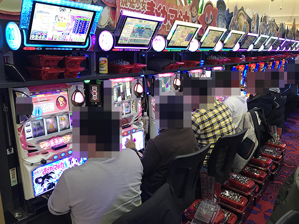 900台以上の遊技台が設置されているうえに大勢のプレイヤーが来店していたため、入店してすぐに大きなにぎわいが感じられた。