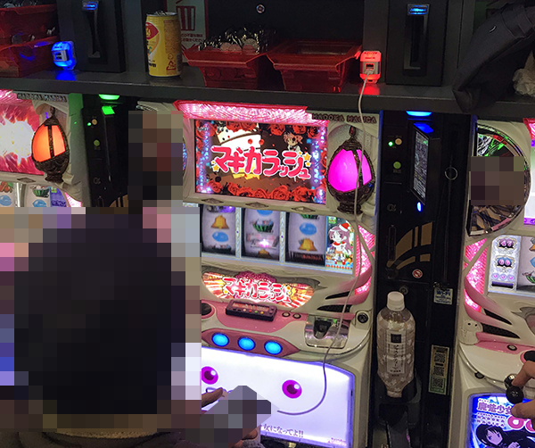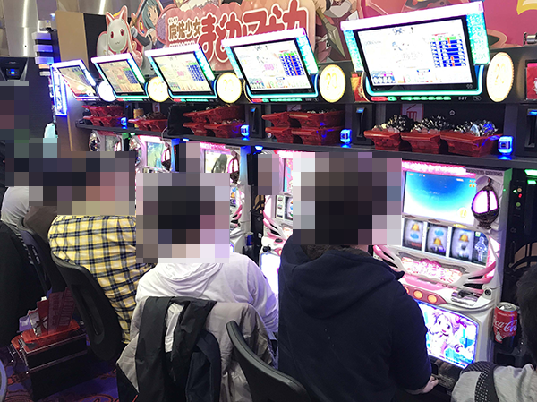 フル稼働となっている「SLOT魔法少女まどか☆マギカ」にて、華麗なパフォーマンスを披露しているプレイヤーを発見。