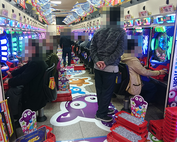 0.5円パチンコの海物語シリーズや「デジハネCRA蒼天の拳天帰」、1円パチンコの「CRぱちんこウルトラセブン2」などに、笑みを浮かべているプレイヤーの姿があった。