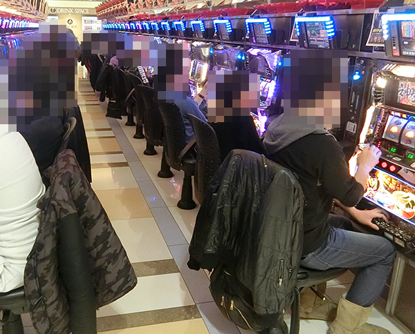 ひとつひとつの台に、レバーをうれしそうに叩いているといった姿がみられ、心から遊技を満喫していたように思う。