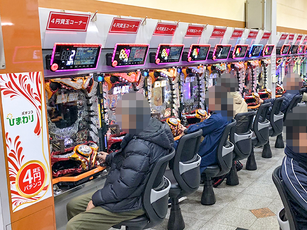 14時ごろの4円パチンコでは、「CR大海物語4」や「CRフィーバー戦姫絶唱シンフォギア LIGHTver.」のシマから活気が感じられ、プレイヤーのイキイキとした表情が印象に残っている。